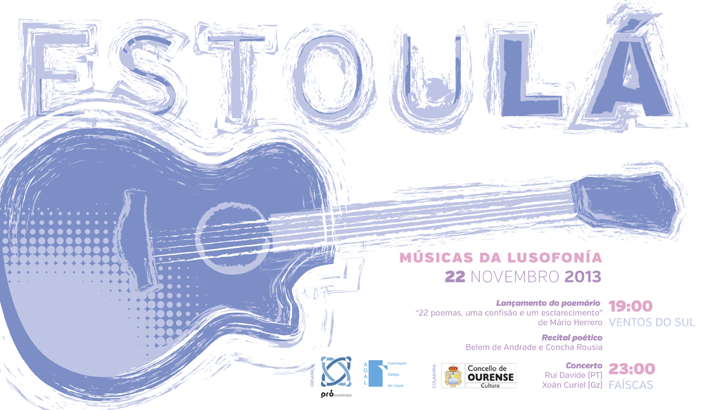 Sexta-feira, 22 de novembro, terá lugar em Ourense a 2ª Edição do Festival Estou Lá. Músicas da Lusofonia. Este evento está organizado pola Pró-AGLP e a AGAL em colaboração com a Concelharia de Cultura do Concelho de Ourense.