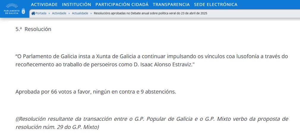 O Parlamento Galego aprova dar um maior reconhecimento a Isaac Alonso Estraviz, promotor da AGLP